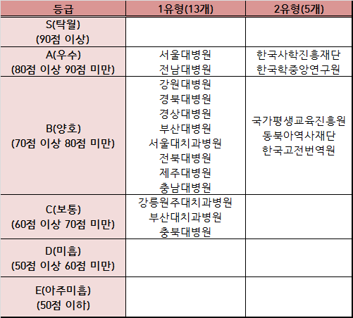 ¼¿ï´ëº´¿ø°ú Àü³²´ëº´¿øÀÌ ±¹¸³´ëº´¿ø °æ¿µ½ÇÀû Æò°¡¿¡¼ 2³â ¿¬¼Ó ‘A’µî±ÞÀ» ¹Þ¾Ò´Ù. ±³À°ºÎ´Â ÃÖ±Ù ¼Ò°ü 18°³ ±â2017-06-20 12:23:53