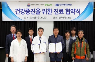 ´Ü±¹´ëÇб³º´¿ø(º´¿øÀå ¹Ú¿ì¼º)Àº 26ÀÏ Àü±¹ÁÖÇѹ̱ºÇѱ¹Àγ뵿Á¶ÇÕ ÆòÅÃÁöºÎ¿Í ¾÷¹«Çù¾àÀ» ü°áÇß´Ù. Çù¾à½ÄÀº ¹Ú¿ì¼º º´¿ø2017-04-26 13:20:38