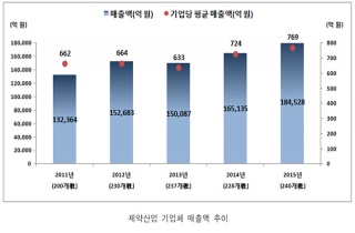 Á¦¾à±â¾÷ÀÇ ÇÑÇØ ¸ÅÃâ¾×ÀÌ 18Á¶¿øÀ» µ¹ÆÄÇÏ¸ç »ç»ó ÃÖ°íÄ¡¸¦ ±â·ÏÇß´Ù. 2015³â Á¦¾à ÃÑ ¸ÅÃâ¾×Àº 18Á¶4528¾ï¿øÀ¸·Î Àü³â´ëºñ 12017-02-24 06:46:18