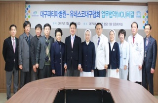 ´ë±¸ÆÄƼ¸¶º´¿ø(º´¿øÀå ¹ÚÁø¹Ì)Àº 7ÀÏ º»°ü 5Ãþ ÀÓ¿øÈ¸Àǽǿ¡¼ À¯³×½ºÄڴ뱸Çùȸ(ȸÀå ³²¼º°É)¿Í ¾÷¹«Çù¾à½ÄÀ» °¡Á³´Ù. À̹ø2017-02-07 16:51:33