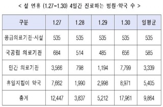 À̹ø ¼³ ¿¬ÈޱⰣ ÇÏ·ç Æò±Õ 4000°³ ÀÌ»óÀÇ º´‧ÀÇ¿øÀÌ Áø·á¸¦ ½Ç½ÃÇÑ´Ù. º¸°Çº¹ÁöºÎ(Àå°ü Á¤Áø¿±)´Â ¼³ ¿¬ÈޱⰣ ±¹¹Î.2017-01-25 12:01:43