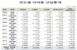 ¿ì¸®³ª¶ó ÀǾàǰ »ý»ê¾×ÀÌ ÇÑÇØ 17Á¶¿ø¿¡ À°¹ÚÇÏ´Â °ÍÀ¸·Î Áý°èµÆ´Ù. 2016 ½ÄǰÀǾàǰ »ê¾÷µ¿ÇâÅë°è¿¡ µû¸£¸é 2006³â 11Á¶4702016-12-05 10:50:30