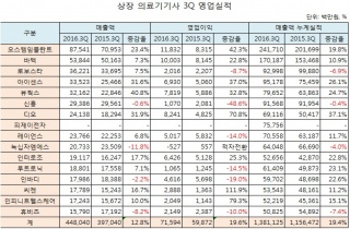 ÁÖ¿ä »óÀå ÀÇ·á±â±â»çµéÀÌ 3ºÐ±â¿¡µµ ¼øÇ×À» À̾´Ù. ¸ÅÃâ¾×°ú ¿µ¾÷ÀÌÀÍ ¸ðµÎ 10%´ëÀÇ ¿Ï¸¸ÇÑ Áõ°¡¸¦ º¸¿´À¸¸ç ¸ÅÃâ¾× ´©°èµµ2016-12-05 05:05:00