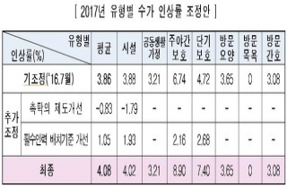 2017³âµµ ³ëÀοä¾ç½Ã¼³°ú Á־߰£º¸È£¼¾ÅÍ µî¿¡¼ ¹Þ´Â Àå±â¿ä¾ç ¼ºñ½º ¼ö°¡°¡ Æò±Õ 4.08% ÀλóµÈ´Ù. ÀÌ´Â Áö³ 7¿ù °áÁ¤ÇÑ ³»2016-11-30 11:09:02