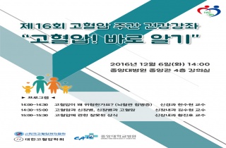 Áß¾Ó´ëÇб³º´¿ø(¿øÀå ±è¼º´ö)Àº ³»´Þ 6ÀÏ ¿ÀÈÄ 2½Ã Áß¾Ó°ü 4Ãþ °Àǽǿ¡¼ ‘°íÇ÷¾Ð °Ç°°ÁÂ’¸¦ °³ÃÖÇÑ´Ù. À̹ø °Ç2016-11-28 16:50:15