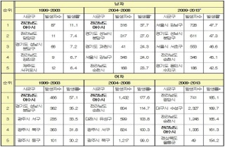 Áö¿ª¿¡ µû¶ó ¾Ï¹ß»ýÀÌ Àû°Ô´Â 2¹è, ¸¹°Ô´Â 15¹è±îÁö Â÷À̰¡ ³ª´Â °ÍÀ¸·Î ºÐ¼®µÆ´Ù. ³²³à ¸ðµÎ¿¡¼ °©»ó¼±¾ÏÀÇ Áö¿ª °£ °ÝÂ÷°¡ .2016-11-22 11:33:09