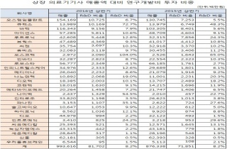 ¿Ã »ó¹Ý±â »óÀå ÀÇ·á±â±â ¾÷üÀÇ R&D ÅõÀÚºñ¿ëÀº ÃÑ 817¾ï¿øÀ¸·Î Áö³ÇØ »ó¹Ý±â 719¾ï¿øº¸´Ù 13.7% Áõ°¡ÇÑ °ÍÀ¸·Î ³ªÅ¸³µ´Ù.2016-09-27 12:20:00