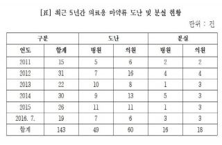 Áö³ 5³â °£ º´¿øÀÇ ¸¶¾à·ù ÀǾàǰ µµ³°ú ºÐ½Ç Àû¹ßÀÌ 140°Ç ³Ñ°Ô ¹ß»ýÇÑ °ÍÀ¸·Î ³ªÅ¸³µ´Ù. ±¹È¸ º¸°Çº¹ÁöÀ§¿øÈ¸ ¼Ò¼Ó »õ´©.2016-09-21 10:14:52