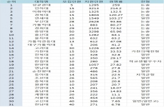 ¼º´ëÀÇ´ë 259:1 ÃÖ°í¡¤¡¤¡¤ÀÎÇÏ´ë 214 : 1 ÀÌ´ë 136:1