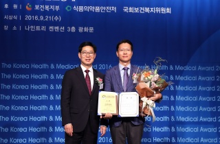 ÀÌ´ë¸ñµ¿º´¿ø ½ÉÀåÇ÷°ü¼¾ÅͰ¡ 21ÀÏ °³ÃÖµÈ '2016 ´ëÇѹα¹ º¸°ÇÀÇ·á´ë»ó'¿¡¼ »ó±Þº´¿øºÎ¹® ±¹È¸ º¸°Çº¹ÁöÀ§¿øÀå»óÀ» ¼ö»óÇß´Ù.2016-09-21 14:50:00