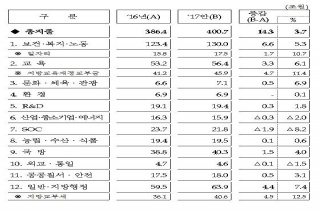 Á¤ºÎ°¡ 2017³â ÃÑ ¿¹»ê¾ÈÀ¸·Î 400Á¶7,000¾ï¿øÀ» Æí¼ºÇÏ´Â µî 2016~2020³â ±¹°¡ÀçÁ¤¿î¿ë°èȹÀ» È®Á¤Çß´Ù. ±âȹÀçÁ¤ºÎ´Â 30ÀÏ 22016-08-31 05:26:43