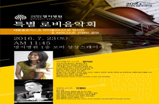 ¼³²ÀÇ´ë ¸íÁöº´¿ø(º´¿øÀå ±èÇü¼ö)ÀÌ ¿À´Â 23ÀÏ È¯ÀÚ ¹× º¸È£ÀÚµéÀ» À§ÇÑ Æ¯º° ·Îºñ À½¾Çȸ¸¦ °³ÃÖÇÑ´Ù. º´¿ø ·Îºñ KT&G..2016-07-19 10:53:20