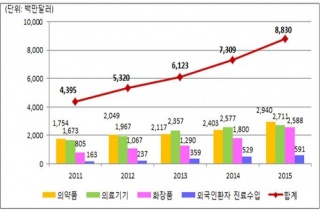 ÀǾàǰ, ÀÇ·á±â±â, ÈÀåǰ µî º¸°Ç»ê¾÷ ¼öÃâ¾×ÀÌ »ç»ó óÀ½À¸·Î 10Á¶¿øÀ» µ¹ÆÄÇß´Ù. º¸°Çº¹ÁöºÎ(Àå°ü Á¤Áø¿±)¿¡ µû¸£¸é 2015..2016-06-12 15:29:49