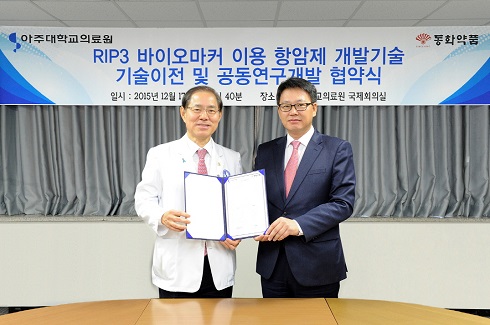 µ¿È¾àǰ(ȸÀå À±µµÁØ)°ú ¾ÆÁÖ´ëÇб³ÀÇ·á¿ø(¿øÀå À¯Èñ¼®)ÀÌ ¹ÙÀÌ¿À¸¶Ä¿ ±â¼úÀ» Ȱ¿ëÇÑ Ç×¾ÏÁ¦ °øµ¿ °³¹ß¿¡ ³ª¼±´Ù. µ¿È2015-12-18 10:55:24