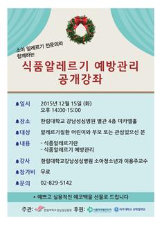 ÇѸ²´ëÇб³ °³²¼º½Éº´¿øÀº ¿À´Â 15ÀÏ ¿ÀÈÄ 2½Ã º°°ü 4Ãþ ¹ÌÄ«¿¤È¦¿¡¼ '½Äǰ¾Ë·¹¸£±â ¿¹¹æ°ü¸®' °ø°³°Á¸¦ °³ÃÖÇÑ´Ù°í ¹àÇû´Ù.2015-12-13 08:31:24