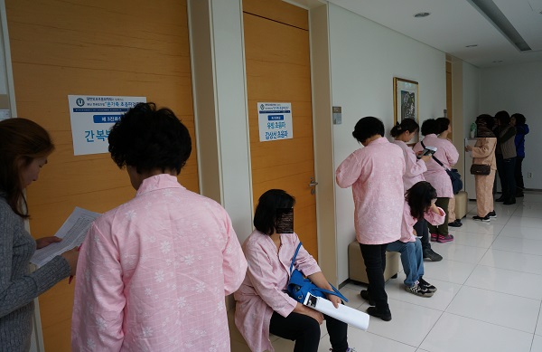 º´¿øÀÌ ¹®À» ´ÝÀº ÀÏ¿äÀÏ ¿ÀÀü, °ËÁø °¡¿îÀ» ÀÔÀº ȯÀÚµéÀÌ Áø·á½Ç ¾Õ¿¡ »ï»ï¿À¿À ¸ð¿© ´ã¼Ò¸¦ ³ª´©°í ÀÖ´Ù. ´ëÇѿܰúÃÊ.2015-12-13 20:00:00