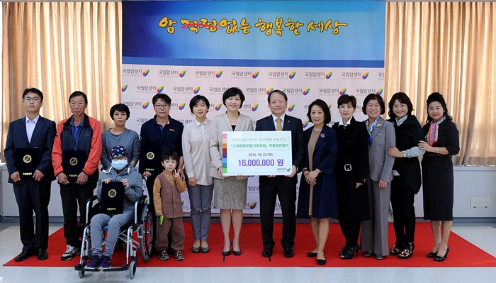 ±¹Á¦¼Ò·ÓƼ¹Ì½ºÆ® 'Çѳ²Å¬·´'ÀÌ ¹ÙÀÚȸ¸¦ ÅëÇØ ¸ðÀº 1600¸¸¿øÀ» Áö³ 22ÀÏ ±¹¸³¾Ï¼¾Å͹ßÀü±â±Ý(ÀÌ»çÀå À̰Çö, ÈÄ¿øÈ¸Àå 2015-10-25 16:26:48