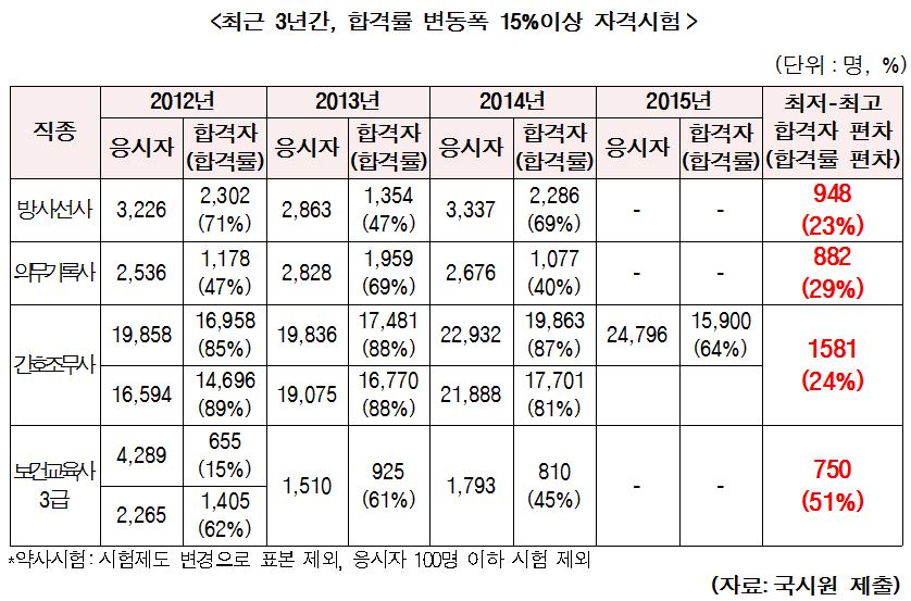 [2015 ±¹Á¤°¨»ç] ÀÇ»ç µî º¸°ÇÀÇ·áÀÎ ÀڰݽÃÇè ÀÀ½Ã¼ö¼ö·á°¡ °ú´ÙÇÏ´Ù´Â ÁöÀûÀÌ Á¦±âµÆ´Ù. ½ÃÇèÁÖ°ü ±â°üÀÎ Çѱ¹º¸°ÇÀÇ·áÀα¹°¡.2015-10-01 11:50:32