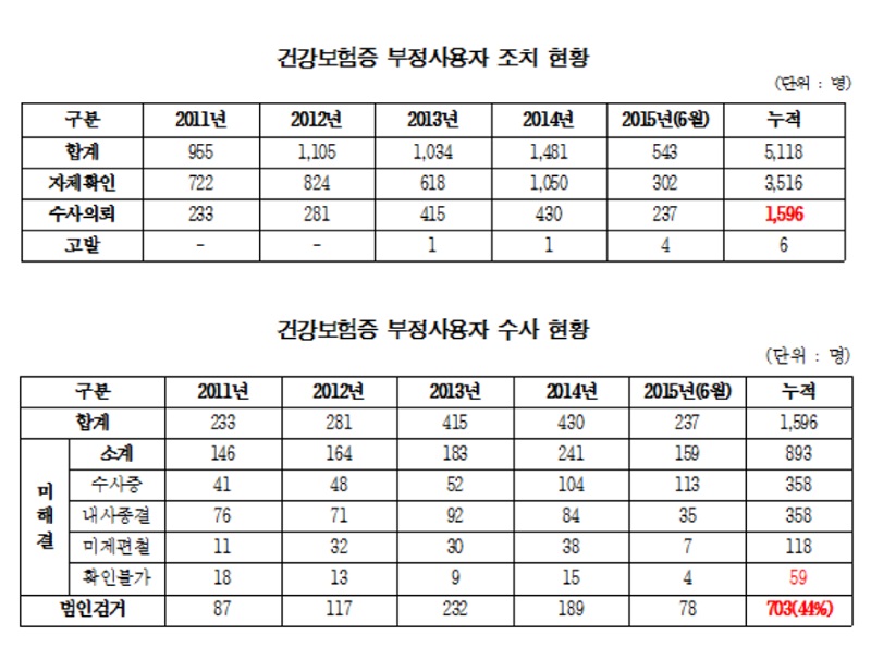 [2015 ±¹Á¤°¨»ç] °Ç°º¸ÇèÁõ ºÎÁ¤»ç¿ë°ú °ü·ÃÇÑ Àüü ÇöȲÀÌ ÃÖÃÊ·Î °ø°³µÆ´Ù. 2011³â ÀÌÈÄ Áö³ 4³â °£ °Ç°º¸ÇèÁõ µµ¿ë°ú ´ë2015-09-22 17:11:16