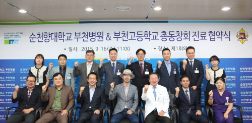 ¼øÃµÇâ´ëÇб³ ºÎõº´¿ø(º´¿øÀå À̹®¼º)Àº 16ÀÏ ¿ÀÀü 11½Ã ¿ø³» 1ȸÀǽǿ¡¼ ºÎõ°íµîÇб³ Ãѵ¿Ã¢È¸¿Í Áø·á Çù¾àÀ» ¸Î¾ú´Ù2015-09-16 15:56:47