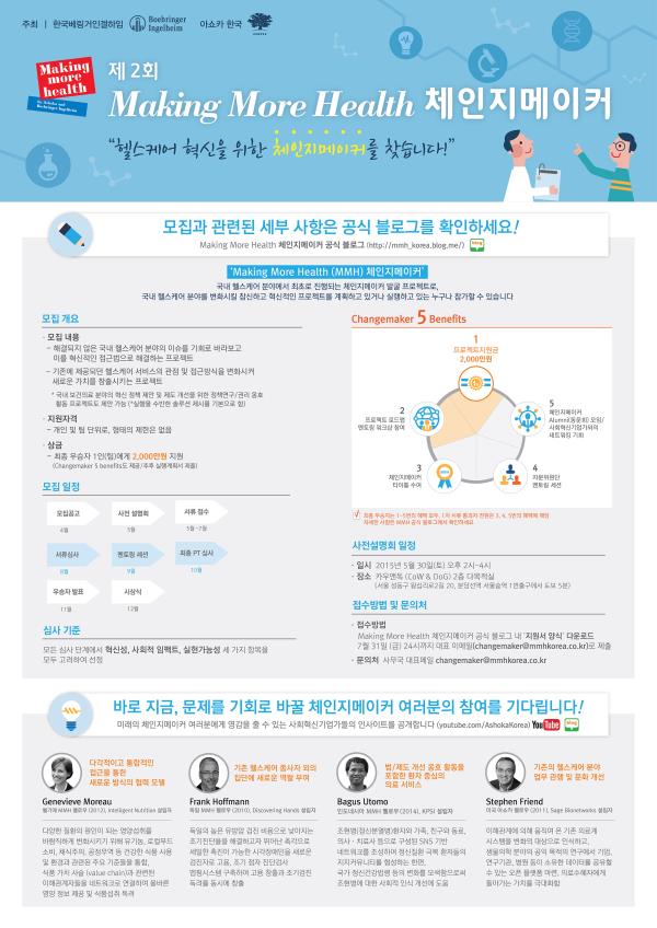 Çѱ¹º£¸µ°ÅÀΰÖÇÏÀÓ°ú »ç´Ü¹ýÀÎ ¾Æ¼îÄ«Çѱ¹Àº 'Á¦2ȸ Making More Health(MMH) üÀÎÁö¸ÞÀÌÄ¿' ÇÁ·ÎÁ§Æ®¸¦ ½ÃÀÛÇÑ´Ù°í 30ÀÏ ¹àÇû.2015-04-30 11:17:38