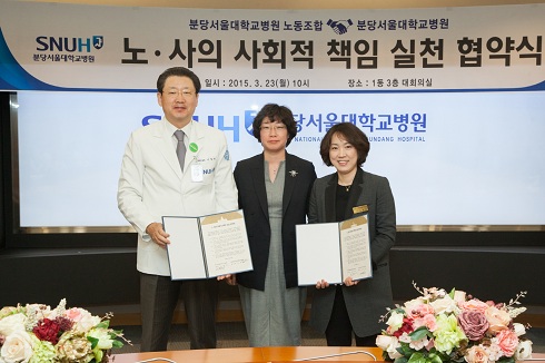 ºÐ´ç¼¿ï´ëÇб³º´¿ø(¿øÀå ÀÌöÈñ)ÀÌ ³ëÁ¶¿Í ÇÔ²² »çȸÀû Ã¥ÀÓÀ» ´ÙÇÒ °ÍÀ» ¾à¼ÓÇÏ´Â ÀÚ¸®¸¦ ¸¶·ÃÇϰí Çù¾àÀ» ü°áÇß´Ù. 2015-03-24 10:25:16