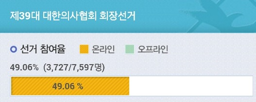 ¿¹»óÀ» µÚ¾þ°í Á¦39´ë ´ëÇÑÀÇ»çÇùȸ ȸÀå ¼±°ÅÀÇ ¿Â¶óÀÎÅõÇ¥À²ÀÌ °¡ÆÄ¸¥ »ó½Â¼¼¸¦ º¸À̰í ÀÖ¾î °ü½ÉÀÌ ÁýÁߵǰí ÀÖ´Ù. »ç2015-03-18 12:04:00