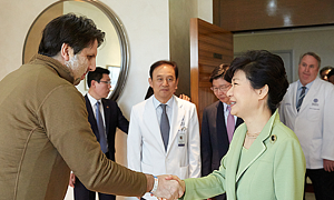Áßµ¿ 4°³±¹ ¼ø¹æ¿¡¼ ±Í±¹ÇÑ ¹Ú±ÙÇý ´ëÅë·ÉÀÌ 9ÀÏ ¸¶Å© ¸®ÆÛÆ® ÁÖÇѹ̱¹´ë»ç°¡ ÀÔ¿ø ÁßÀÎ ¿¬¼¼´ë ¼¼ºê¶õ½ºº´¿øÀ» ã¾Ò´Ù.[»ç2015-03-09 15:16:03