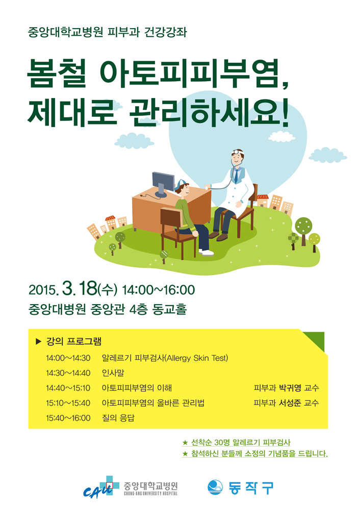 Áß¾Ó´ëÇб³º´¿ø(¿øÀå ±è¼º´ö)Àº ¿À´Â 18ÀÏ(¼ö) ¿ÀÈÄ 2½ÃºÎÅÍ º´¿ø Áß¾Ó°ü 4Ãþ µ¿±³È¦¿¡¼ ¡®º½Ã¶ ¾ÆÅäÇÇÇǺο°, Á¦´ë·Î °ü¸®Çϼ¼2015-03-03 10:31:30