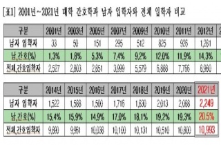 [µ¥Àϸ®¸Þµð ÀÓ¼ö¹Î ±âÀÚ] ³²ÀÚ °£È£´ë»ý ºñÀ²ÀÌ »ç»ó óÀ½ 20%¸¦ ³Ñ¾î¼¹´Ù. ¹Ý¸é Àǰú´ëÇп¡¼´Â ¿©Çлý ÀÔÇÐÀÚ ¼ö°¡ 2001³â .2021-09-26 18:46:59