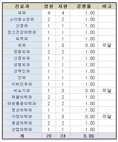 Áø·á°ú Á¤¿ø Áö¿ø °æÀï·ü ºñ°í ³»°ú 28 33 1.18 ¡¡ ¼Ò¾ÆÃ»¼Ò³â°ú 13 14 1.08 ¡¡ ½Å°æ°ú 5 5 2014-12-03 19:06:10