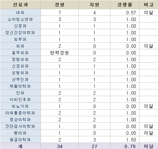 Áø·á°ú Á¤¿ø Áö¿ø °æÀï·ü ºñ°í ³»°ú 7 6 0.86 ¹Ì´Þ ¼Ò¾ÆÃ»¼Ò³â°ú 3 3 1.00 ¡¡ ½Å°æ°ú 2 1 0.52014-12-03 18:16:24