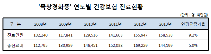 Ç÷°üÀÌ Á¼¾ÆÁ® ½ÉÇÒ °æ¿ì ³úÁ¹ÁßÀ» À¯¹ßÇÏ´Â Á×»ó°æÈÁõȯÀÚ°¡ Å©°Ô ´Ã°í ÀÖ´Â °ÍÀ¸·Î ³ªÅ¸³µ´Ù. 19ÀÏ ±¹¹Î°Ç°º¸Çè°ø´Ü(ÀÌ»ç2014-10-19 13:01:00