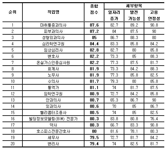 À¯¸ÁÇÑ Á÷¾÷À¸·Î ¸¶ÃëÅëÁõ°ú ÀÇ»ç(1À§)¸¦ ºñ·ÔÇØ ÇǺΰú ÀÇ»ç(2À§), ¼ºÇü¿Ü°ú ÀÇ»ç(3À§)°¡ ¼±µÎ¿¡ À̸§À» ¿Ã·È´Ù. ÀÌ´Â Çѱ¹°í2014-10-16 11:19:09