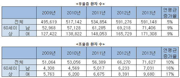 ¿ì¿ïÁõ°ú Á¶¿ïÁõ ȯÀÚ°¡ ²ÙÁØÈ÷ ´Ã¾î³ª°í ÀÖ´Â °¡¿îµ¥ ³ëÀÎÃþ ȯÀÚ Áõ°¡À²ÀÌ ±Þ°ÝÇÑ °ÍÀ¸·Î ³ªÅ¸³µ´Ù. »õÁ¤Ä¡¹ÎÁÖ¿¬ÇÕ À̸ñÈñ2014-08-14 11:36:08