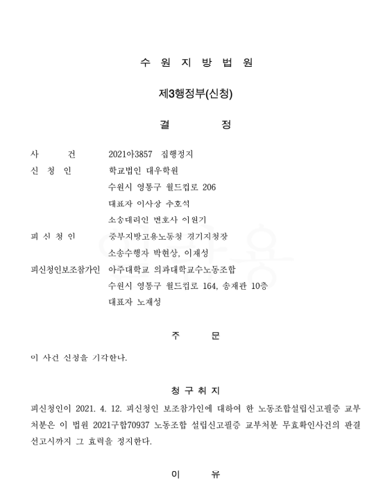 [µ¥Àϸ®¸Þµð ÀÓ¼ö¹Î ±âÀÚ] ³ëµ¿Ã»ÀÌ ¾ÆÁÖ´ëÇб³ Àǰú´ëÇÐ ±³¼ö³ëµ¿Á¶ÇÕ(¾ÆÁÖÀÇ´ë±³¼ö³ëÁ¶)¿¡ ´ëÇØ ³ëÁ¶ ¼³¸³½Å°íÁõÀ» ±³ºÎÇÑ È¿.2021-09-09 20:12:39