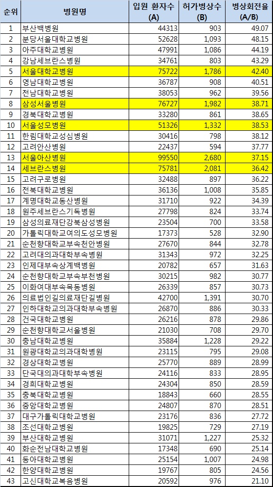 43°³ »ó±ÞÁ¾ÇÕº´¿ø Áß º´»óȸÀüÀ²ÀÌ °¡Àå ³ôÀº ÀÇ·á±â°üÀº ºÎ»ê¹éº´¿øÀÎ °ÍÀ¸·Î È®ÀεƴÙ. º´»óȸÀüÀ²Àº ½ÇÁ¦ ÀÔ¿ø, Åð¿øÇÑ .2014-06-10 20:00:00