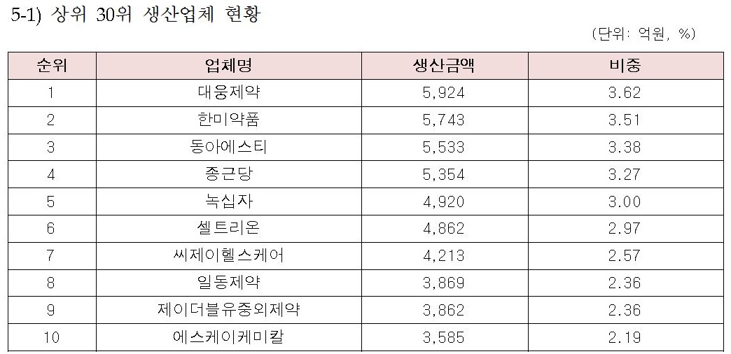 Áö³ÇØ ÀǾàǰ »ý»ê½ÇÀûÀÌ 16Á¶¿øÀ» µ¹ÆÄÇϸç Àü³â ´ëºñ 4.2% Áõ°¡Çß´Ù. ÀÌ °¡¿îµ¥ ¾÷ü´Â ´ë¿õÁ¦¾à, ǰ¸ñÀº º£¸£³ª¹ÙÀÌ¿ÀÅØ ¡®.2014-05-15 12:33:36