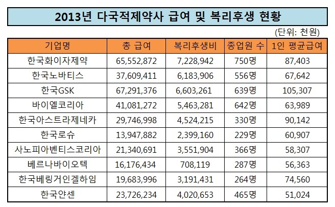 ÃÖ±Ù ±ÝÀ¶°¨µ¶¿ø¿¡ º¸°íµÈ 2013³â ¸ÅÃâ »óÀ§ 10°³ ´Ù±¹Àû Á¦¾à»ç °¨»çº¸°í¼¸¦ ºÐ¼®ÇÑ °á°ú, Çѱ¹GSKÀÇ 1ÀÎ Æò±Õ±Þ¿©°¡ °¡Àå ³ô.2014-04-15 20:00:00