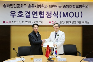 Áß¾Ó´ëÇб³º´¿øÀº Áß±¹ ÈÆÃá½Ãº´¿ø°ú »óÈ£ ¿ìÈ£ Çù·Â°ú Çмú ±³·ù¸¦ ÃËÁøÇϱâ À§ÇÑ ÇùÁ¤À» ü°áÇß´Ù°í 26ÀÏ ¹àÇû´Ù. Áß±¹,2014-02-26 12:04:37