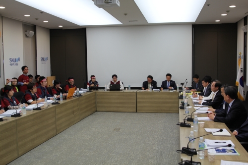 ¿¬°ü »ê¾÷ÀÇ ¡®À¶º¹ÇÕ¡¯À» ¸ñÇ¥·Î ´Þ·Á¿Ô°Å³ª ÁøÇàÇü¿¡ ÀÖ´Â µÎ °ÅÀåÀÌ ±¹Á¤°¨»çÀå¿¡¼ ¡®Ã¢°ú ¹æÆÐ¡¯ÀÇ ¸ð½ÀÀ» ¿¬ÃâÇØ .2013-10-29 20:00:00