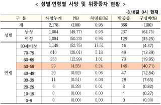[µ¥Àϸ®¸Þµð ¾çº¸Çý ±âÀÚ] Äڷγª19 À§ÁßÁõȯÀÚ ºñÀ²ÀÌ °¡Àå ³ôÀº 50´ë°¡ ¼ºÀÎ ¿¬·ÉÃþ °¡¿îµ¥ Á¢Á¾¿Ï·áÀ²ÀÌ °¡Àå ³·Àº °ÍÀ¸·Î È®2021-08-19 12:54:27
