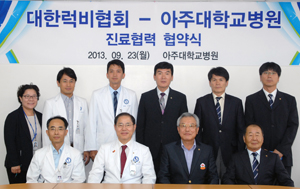 ¾ÆÁִ뺴¿ø(º´¿øÀå À¯Èñ¼®)°ú ´ëÇÑ·°ºñÇùȸ(ÇùȸÀå ½ÅÁ¤ÅÃ)°¡ Áö³ 23ÀÏ ·°ºñ ±¹°¡´ëÇ¥ ¼±¼öÀÇ °Ç°ÁõÁøÀ» À§ÇÑ Áø·áÇù¾àÀ» ü°á2013-09-24 12:18:53