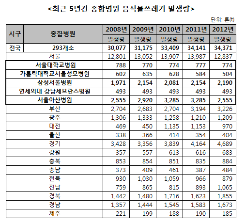 Àü±¹ Á¾ÇÕº´¿ø¿¡¼ ¿¬°£ ¹èÃâµÇ´Â À½½Ä¹°¾²·¹±â¾çÀÌ 3¸¸tÀ» ³Ñ´Â °ÍÀ¸·Î ¹àÇôÁ³´Ù. »õ´©¸®´ç ÃÖºÀÈ« ÀÇ¿øÀÌ È¯°æºÎ¿¡ Á¦Ãâ¹Þ.2013-08-08 11:51:11