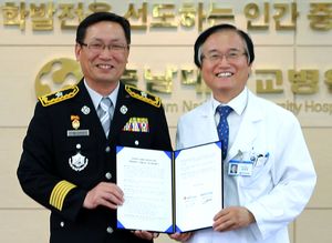 Ãæ³²´ëÇб³º´¿ø(¿øÀå ¼Û½ÃÇå)°ú ´ëÀü±¤¿ª½Ã ¼Ò¹æº»ºÎ(¼Ò¹æº»ºÎÀå ±è¼º¿¬)´Â13ÀÏ ÁßÁõÀÀ±ÞȯÀÚ À̼ۡ¤ Áø·áü°è ±¸ÃàÀ» À§...2013-06-13 17:06:19
