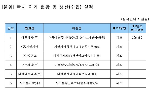 ½ÄǰÀǾàǰ¾ÈÀüó(óÀå Á¤½Â)°¡ ¡®È²»ê¸¶±×³×½· 50% ÇÔÀ¯ ÁÖ»çÁ¦¡¯¸¦ µÎ°í ¾ÈÀü¼º ¼ÇÑÀ» ¹èÆ÷Çß´Ù. À̹ø Á¶Ä¡´Â Ú¸ FDA°¡ ¡®.2013-06-03 17:55:37