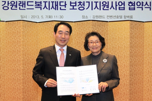 (»ç)»ç¶ûÀÇ ´ÞÆØÀÌ¿Í °¿ø·£µåº¹ÁöÀç´ÜÀÌ °¿øµµ Æó±¤Áö¿ª Àú¼ÒµæÃþ ³Ã»ÀεéÀ» Áö¿øÇϱâ À§ÇÑ ¾÷¹« Çù¾àÀ» ¸Î¾ú´Ù. À̹ø Çù¾à2013-05-09 11:36:47