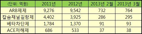 Áö³´Þ °íÇ÷¾Ð Ä¡·áÁ¦ 4°³(ARB Á¦Á¦, Ä®½·Ã¤³Î±æÇ×Á¦, º£Å¸Â÷´ÜÁ¦, ACE ÀúÇØÁ¦)ÀÇ ¿ø¿Üó¹æ ºÐ¼® °á°ú, ARB Á¦Á¦°¡ ¿©ÀüÈ÷ ¼±µÎ 2013-04-16 12:31:23