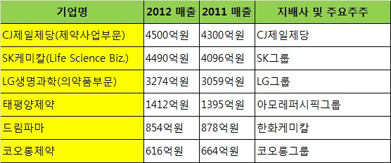 Á¦¾à¾÷°è°¡ Áö³ÇØ Á¤ºÎ°¡ ÃßÁøÇÑ Àϰý ¾à°¡ÀÎÇÏ µîÀ¸·Î ¿ªÇ³À» ¸ÂÀº °¡¿îµ¥ ±¹³» ±¼Áö ´ë±â¾÷µéÀÇ Á¦¾à»ç¾÷ ¸ÅÃâ ¼ºÀûÇ¥2013-04-15 20:00:00
