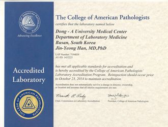 µ¿¾Æ´ëº´¿ø Áø´Ü°Ë»çÀÇÇаú(°úÀå ÇÑÁø¿µ ±³¼ö)°¡ ºÎ»ê¡¤°æ³²Áö¿ª ÃÖÃÊ·Î ¹Ì±¹°Ë»ç½ÇÁ¤µµ°ü¸®±â°ü(CAP)À¸·ÎºÎÅÍ ¿ì¼ö°Ë»ç½Ç .2013-01-09 15:23:14